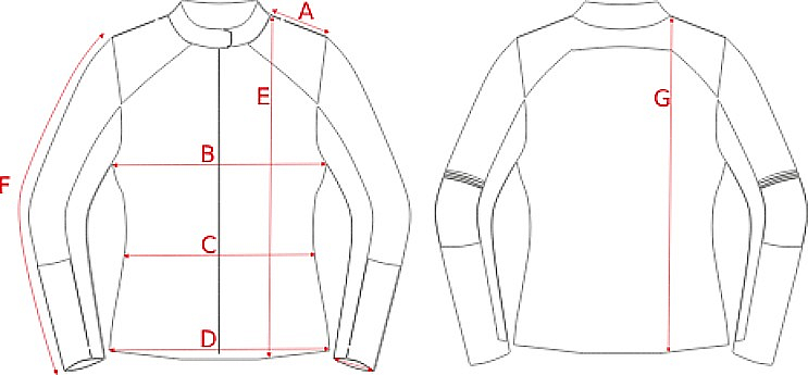 Položte na stôl bundu, ktorú bežne nosíte a zmerajte jej vonkajšie rozmery pri miernom natiahnutí. Následne vyberte z vyššie uvedenej tabuľky veľkosť, ktorá najviac zodpovedá vami nameraným hodnotám.