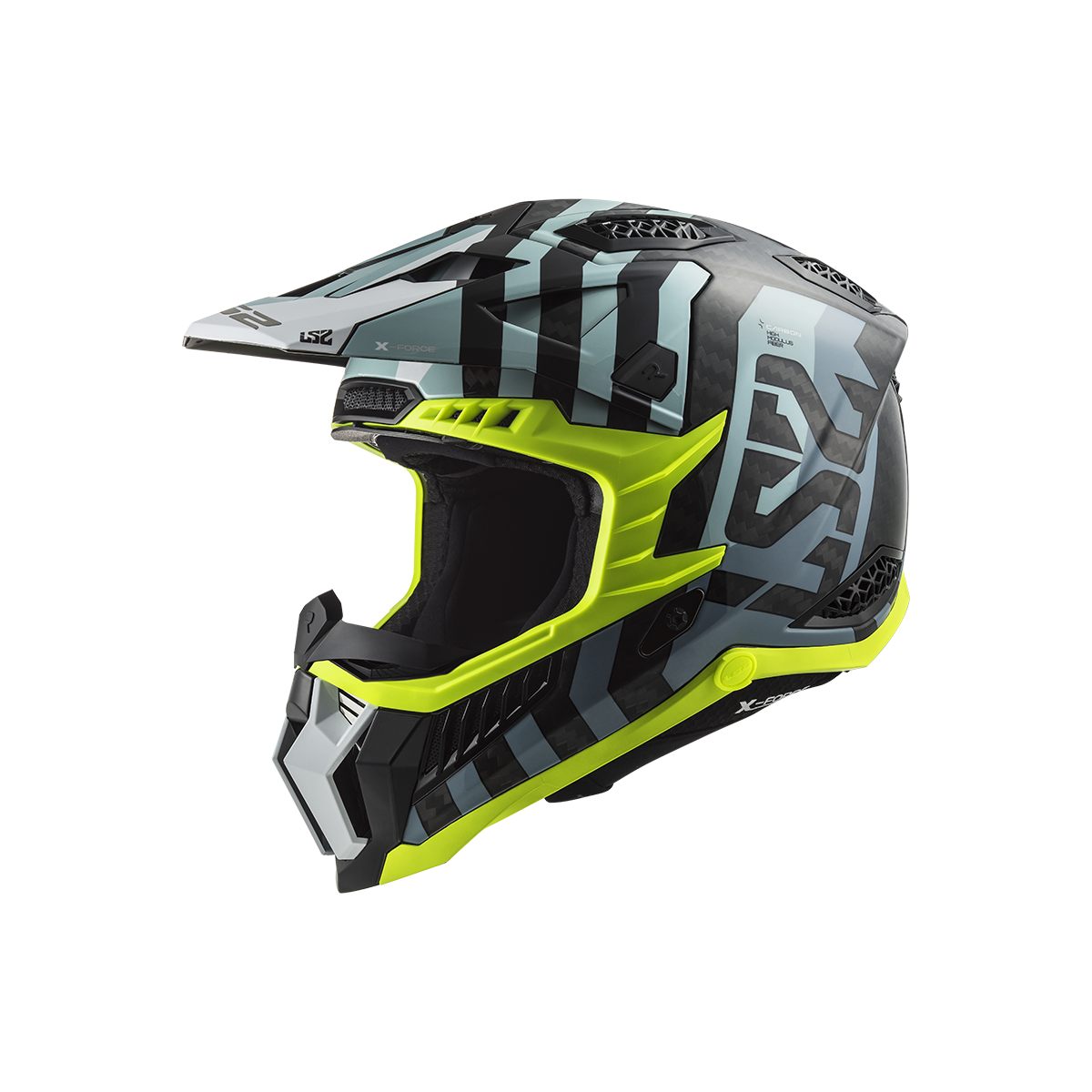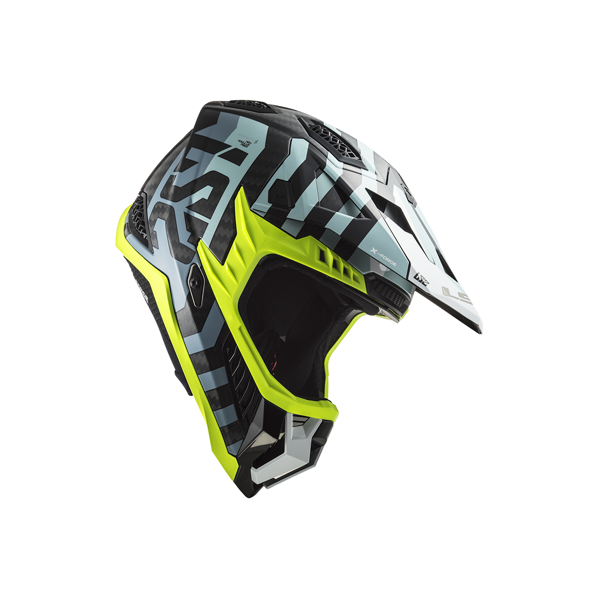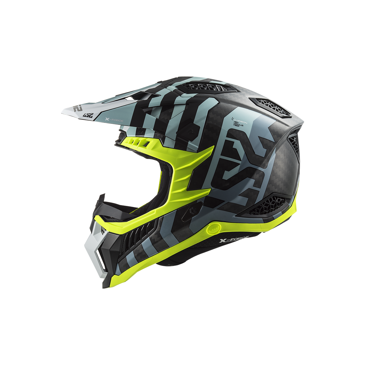 LS2 MX703 X-Force je vrcholom ponuky motokrosových a terénnych prilieb od LS2. Táto prilba sa môže pochváliť karbónovou škrupinou, ktorá poskytuje nízku hmotnosť a vysokú pevnosť. Slnečná clona je ľahko odnímateľná vďaka rýchloupínaciemu mechanizmu a jej dĺžku je možné nastaviť podľa potreby. Prepracovaný interiér prilby obsahuje nový nástavec na pripojenie k systému na pitie, čo zabezpečuje pohodlie aj počas dlhších jázd. Prilba X-Force Carbon je schválená podľa novej homologizácie ECE 22.06.