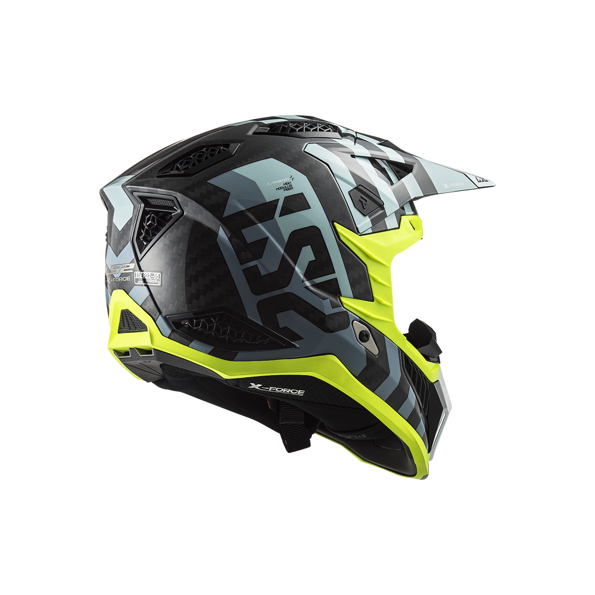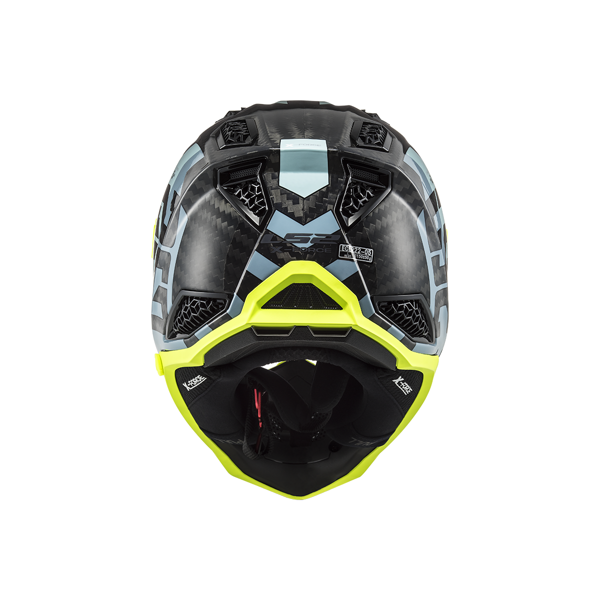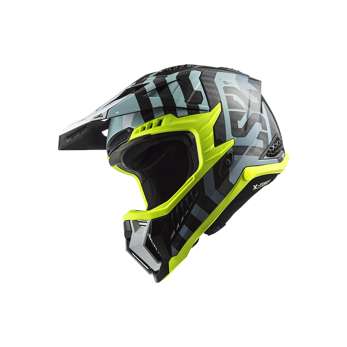 LS2 MX703 X-Force je vrcholom ponuky motokrosových a terénnych prilieb od LS2. Táto prilba sa môže pochváliť karbónovou škrupinou, ktorá poskytuje nízku hmotnosť a vysokú pevnosť. Slnečná clona je ľahko odnímateľná vďaka rýchloupínaciemu mechanizmu a jej dĺžku je možné nastaviť podľa potreby. Prepracovaný interiér prilby obsahuje nový nástavec na pripojenie k systému na pitie, čo zabezpečuje pohodlie aj počas dlhších jázd. Prilba X-Force Carbon je schválená podľa novej homologizácie ECE 22.06.