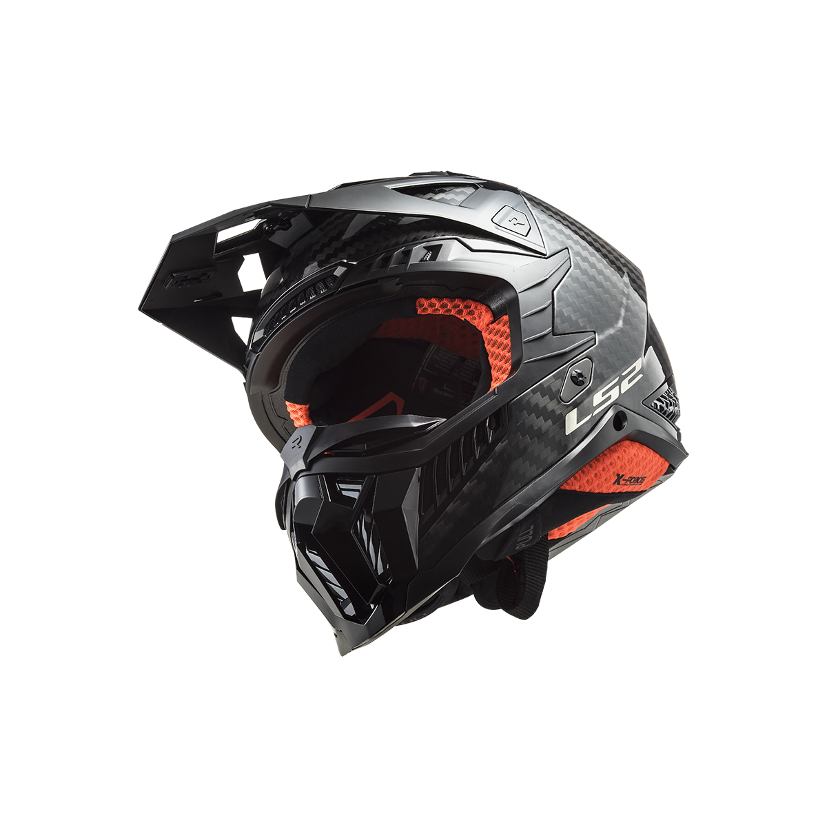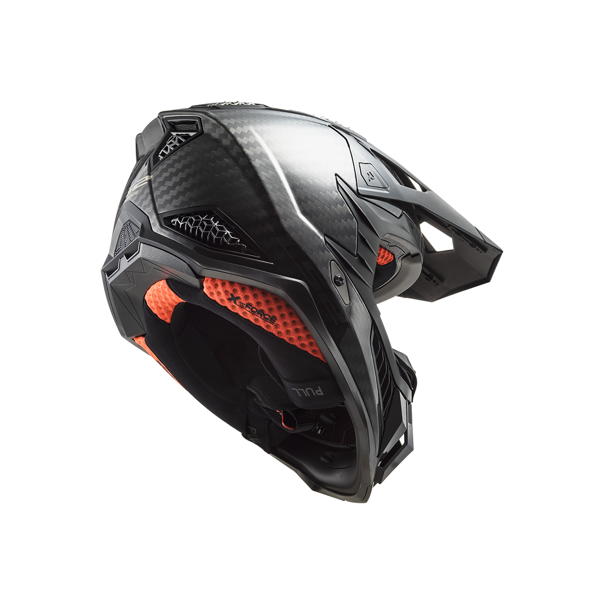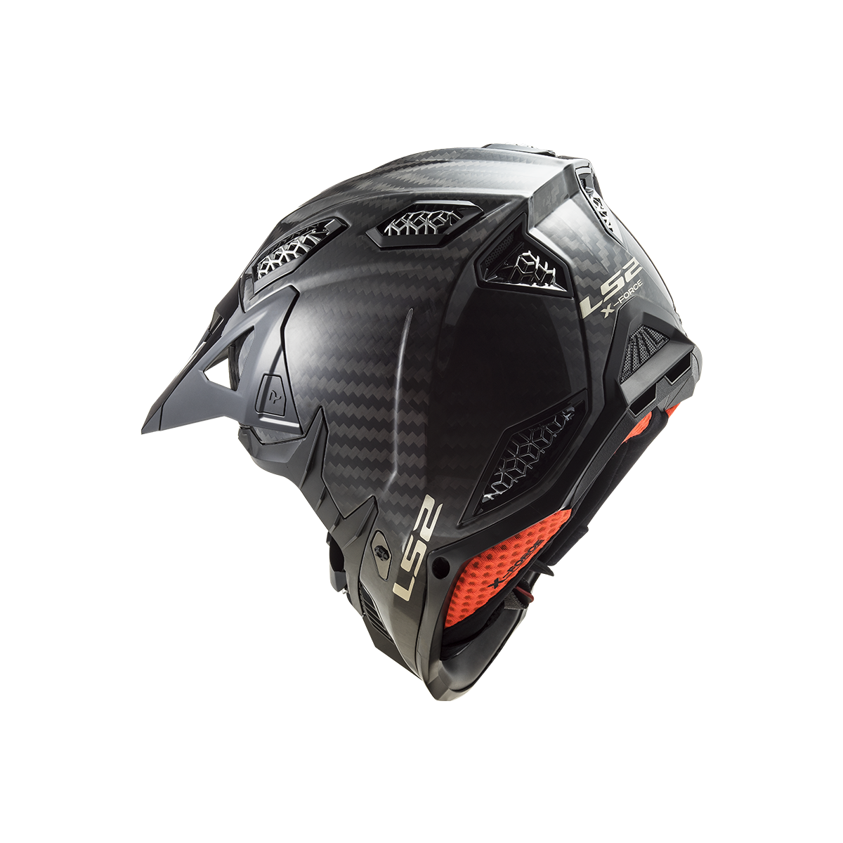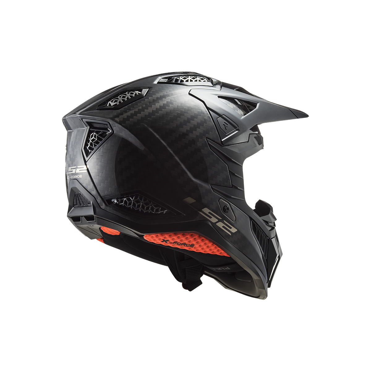 LS2 MX703 X-Force je vrcholom ponuky motokrosových a terénnych prilieb od LS2. Táto prilba sa môže pochváliť karbónovou škrupinou, ktorá poskytuje nízku hmotnosť a vysokú pevnosť. Slnečná clona je ľahko odnímateľná vďaka rýchloupínaciemu mechanizmu a jej dĺžku je možné nastaviť podľa potreby. Prepracovaný interiér prilby obsahuje nový nástavec na pripojenie k systému na pitie, čo zabezpečuje pohodlie aj počas dlhších jázd. Prilba X-Force Carbon je schválená podľa novej homologizácie ECE 22.06.