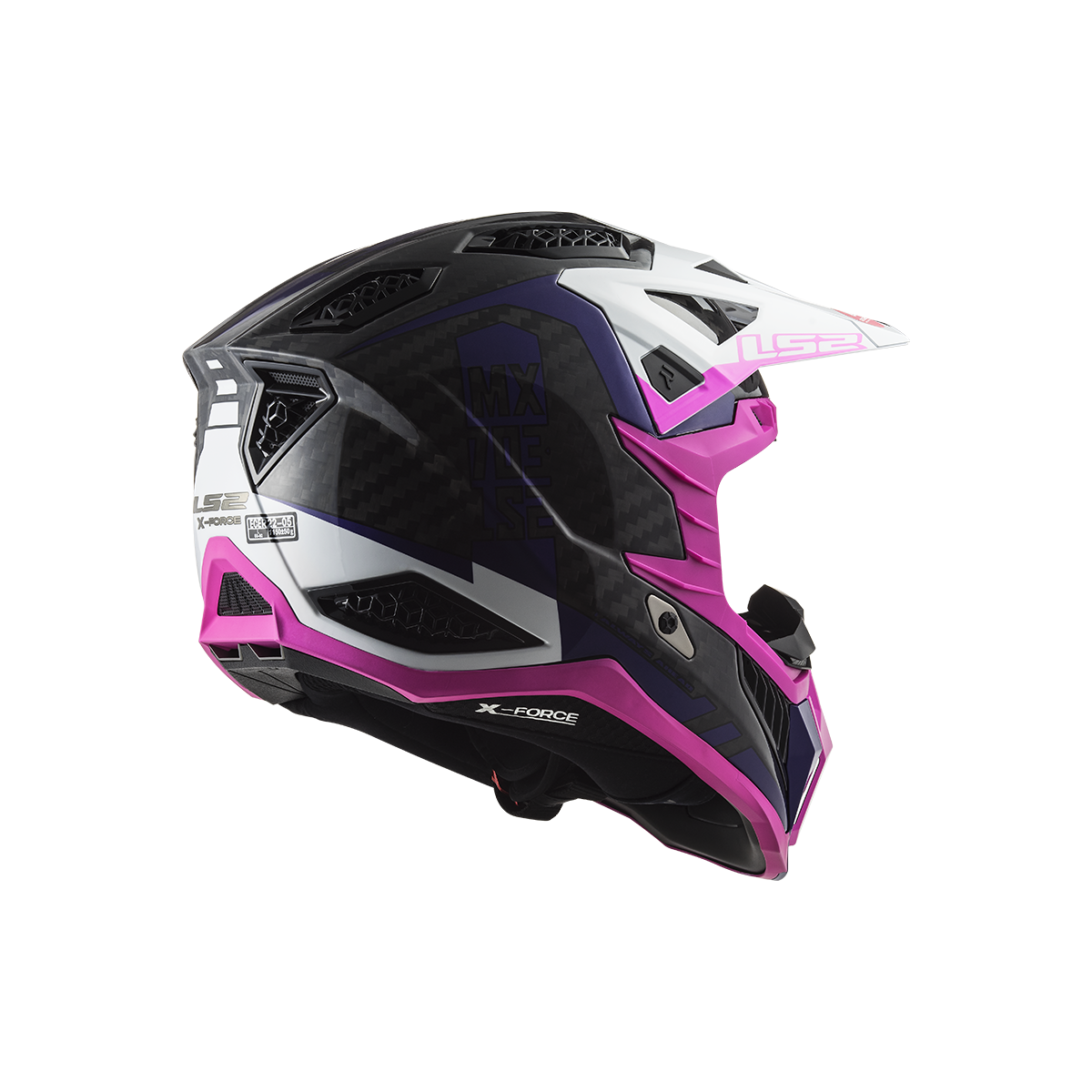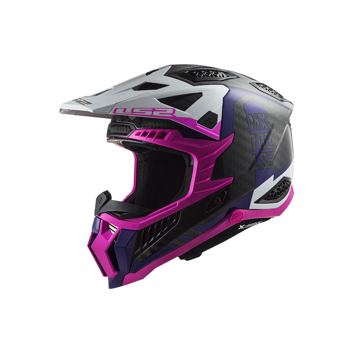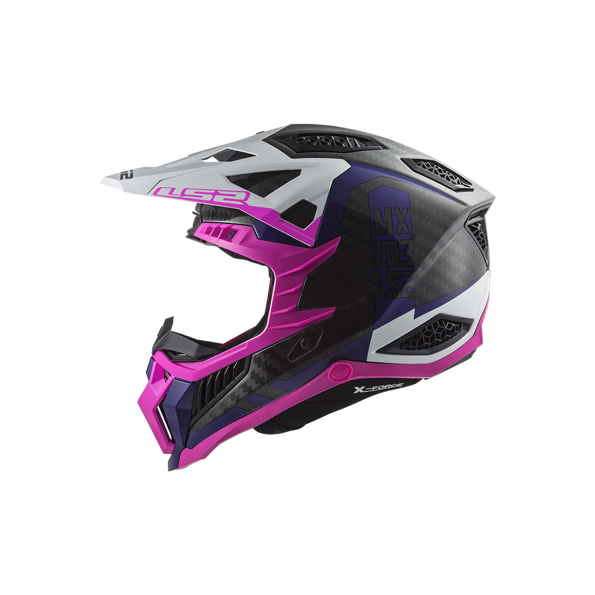 LS2 MX703 X-Force je vrcholom ponuky motokrosových a terénnych prilieb od LS2. Táto prilba sa môže pochváliť karbónovou škrupinou, ktorá poskytuje nízku hmotnosť a vysokú pevnosť. Slnečná clona je ľahko odnímateľná vďaka rýchloupínaciemu mechanizmu a jej dĺžku je možné nastaviť podľa potreby. Prepracovaný interiér prilby obsahuje nový nástavec na pripojenie k systému na pitie, čo zabezpečuje pohodlie aj počas dlhších jázd. Prilba X-Force Carbon je schválená podľa novej homologizácie ECE 22.06.